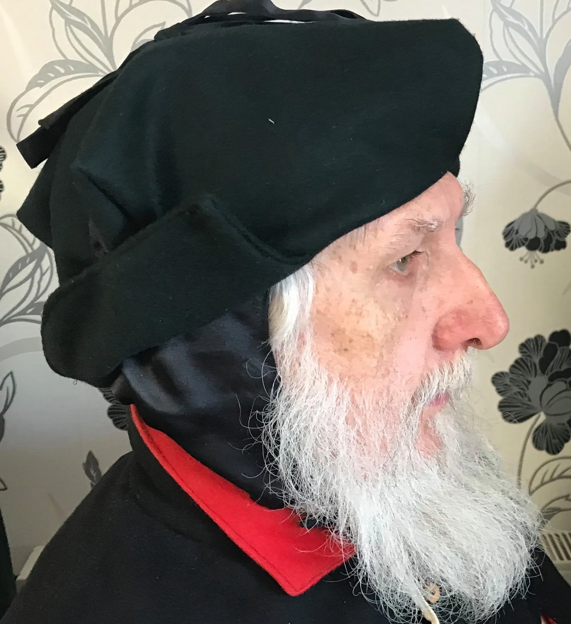 On the left we can see a typical example of a Tudor Scholar's cap, commonly worn by clergy at the time, as demonstrated by the engraving of John Knox.